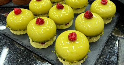 Se încălzesc toate ingredientele și se glasează blaturile decupate.